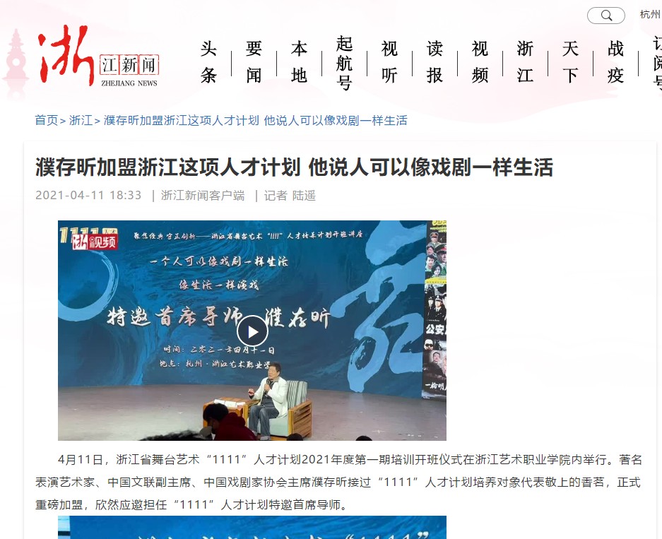 浙江新闻:濮存昕加盟浙江这项人才计划 他说人可以像戏剧一样生活
