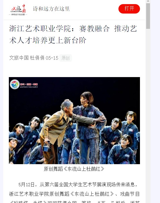 在省高职高专院校技能大赛艺术专业技能(声乐表演)赛项中获第一名的选手和省中职学校戏曲技能赛项中获得第一名的该校团队,即将代表浙艺参加国赛,同学们将在更大的舞台上展现浙艺水平。此外,该校原创现当代舞剧目《东流山上杜鹃红》、戏曲节目《珍珠塔·失塔》参加了第六届全国大学生艺术节展演。学校党委书记薛亮表示,百年恰似风华正茂。今年是中国共产党成立100周年,100年前的共产党员,和同学们现在的年纪相仿,在风华正茂之时踏上了革命的征途。师生们代表学校在全国大艺节舞台上赛出了风格、赛出了水平,把自己最精彩的一刻、最灿烂的一面留给观众,也再一次奠定了浙艺在全国艺术院校中的地位。