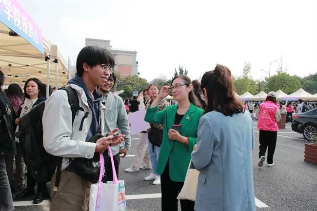设计学院报到处,各式迎新宣传随处可见,迎新氛围浓厚,仪式感满满,吸引众多新同学打卡拍照。