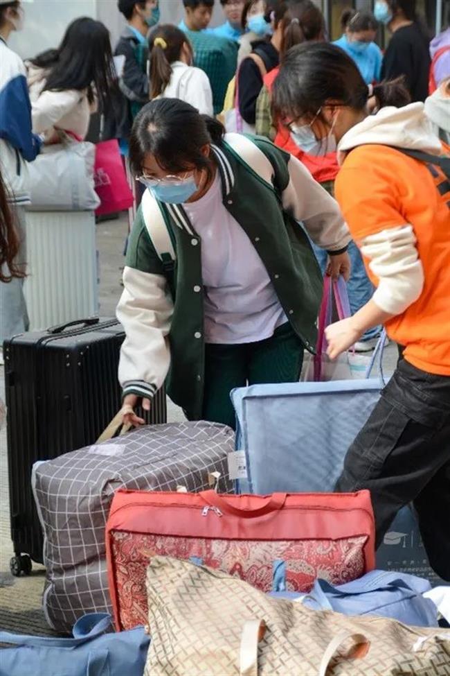 热情的学生党员和志愿者们身穿七彩T恤,积极接待新同学,答疑解惑、指引道路、搬运行李,帮助新生顺利完成各项报到手续。