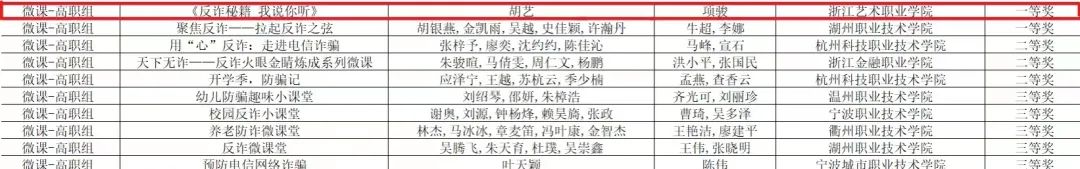 经过初赛和线上决赛答辩,由图信中心项骏老师指导,我院20定向1班胡艺同学独立完成的参赛作品《反诈秘籍 我说你听》在微课高职组中取得了省一等奖的优异成绩。