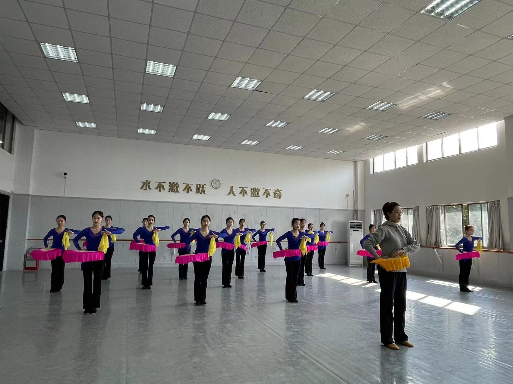 开学第一天教学检查是舞蹈学院日常教学质量保障建设的重要组成部分,对及时了解教学运行情况,保障教学工作有序开展具有重要意义。从教学检查情况看,前期教务员及办公室成员已经为新学期开学做了大量认真细致的准备工作,无论教室门口电子课表的使用,设施设备的安装调试,以及教室、走廊环境的整改,都得到有效的更新与保障。教学保障措施充分有力,教学秩序井然有序,教师精神饱满,授课准备充分、均能提前到岗,课堂氛围效果良好;学生出勤率百分百,服装道具等准备妥当,上课积极认真。