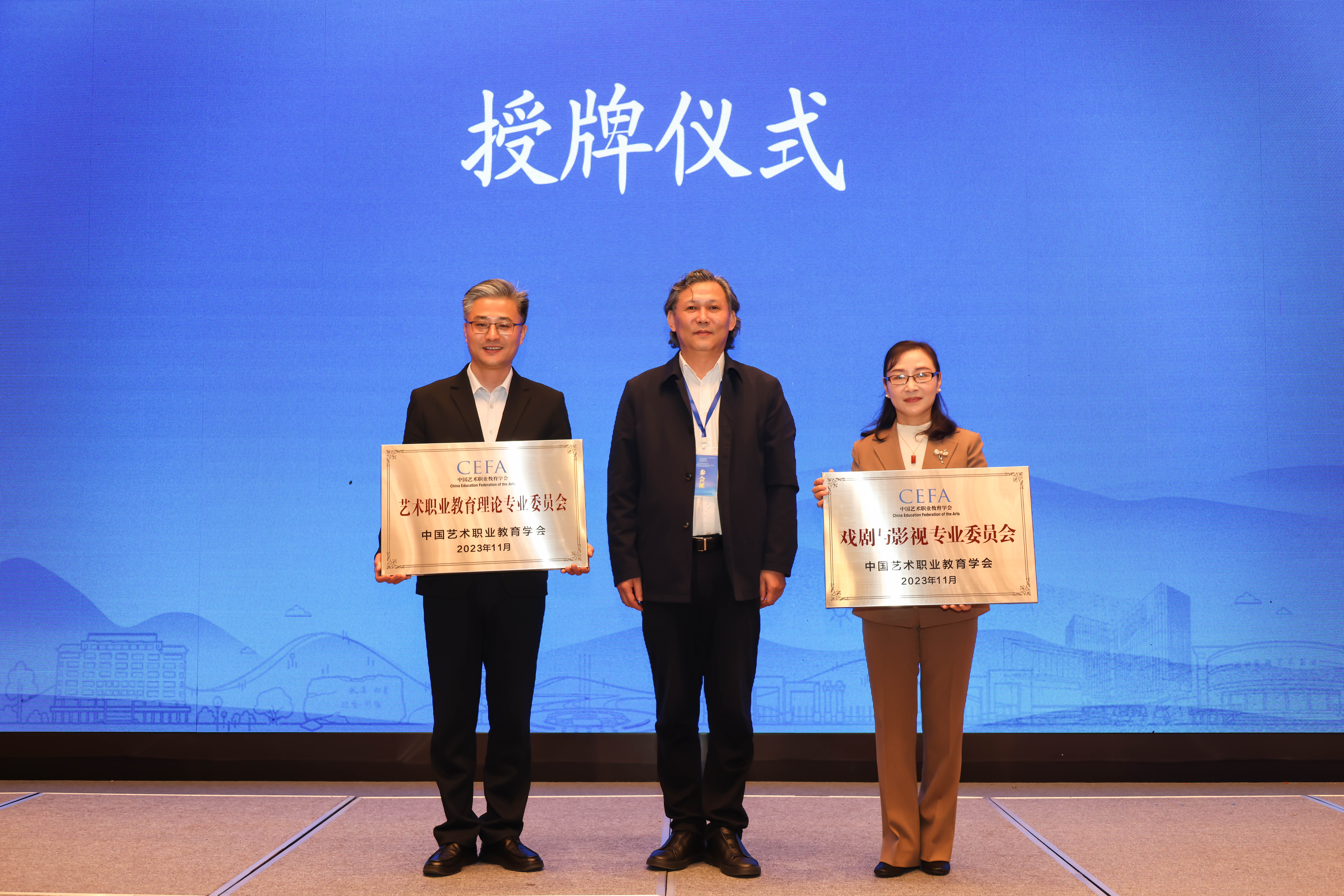 会议还正式宣布了审议通过的新一届艺术职业教育理论专业委员会、戏剧与影视专业委员会主任委员、副主任委员、秘书长及副秘书长名单,并颁发了聘书。