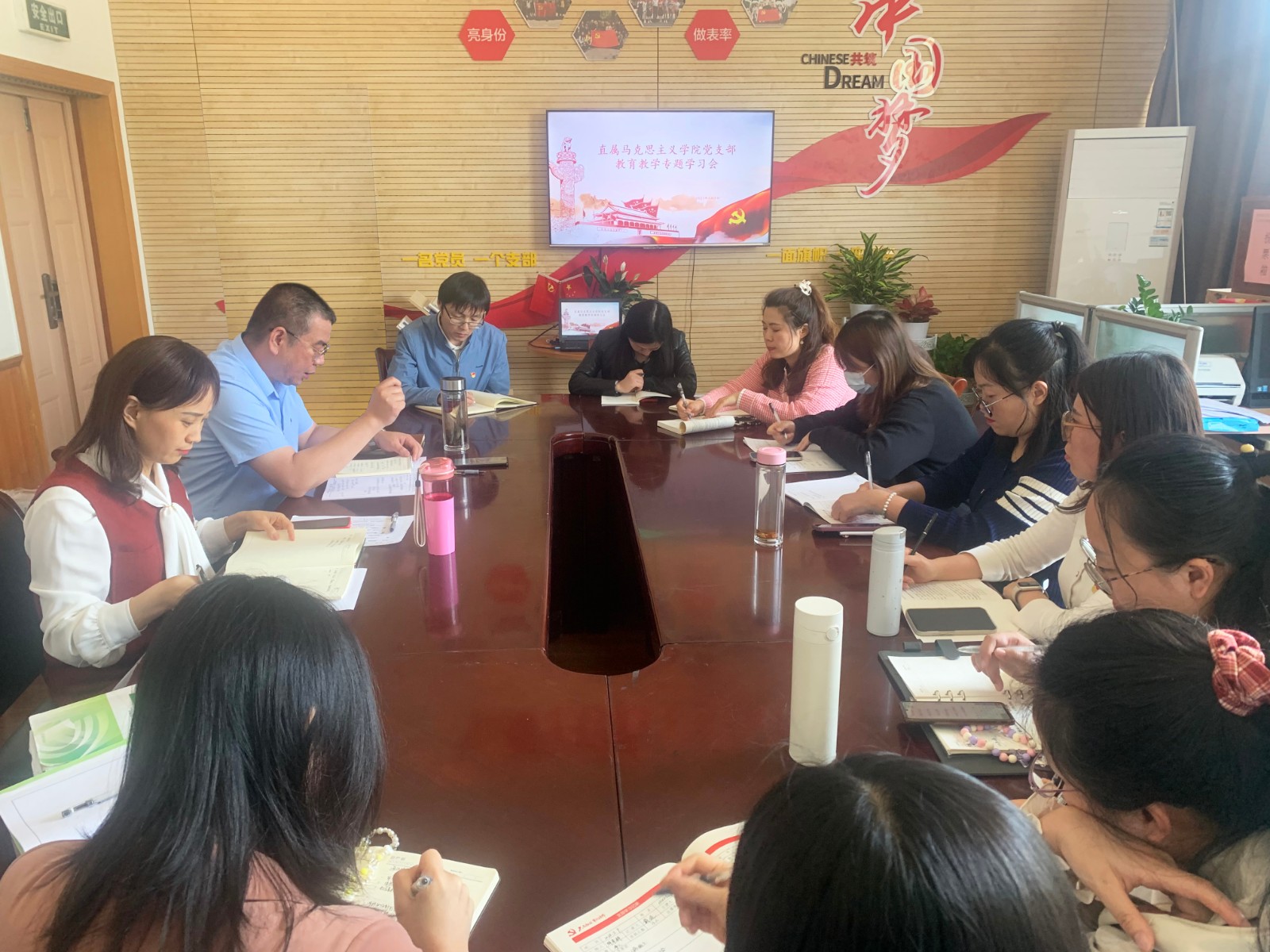 为深入开展学习贯彻习近平新时代中国特色社会主义思想主题教育,进一步提高思政教师教育教学质量,5月9日,直属马克思主义学院党支部在13102会议室召开教育教学专题学习会,支部全体党员参加会议,会议由马克思主义学院副院长胡卓群主持。