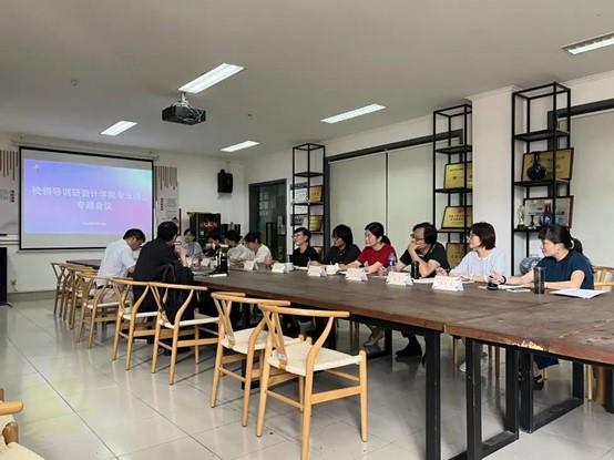 设计学院领导班子对学院整体建设、专业建设成果等情况进行全面汇报。各教研室主任立足专业发展需求,结合提质培优调研工作,重点围绕专业建设现状、存在问题和下一步发展思路等三个方面作深入汇报。