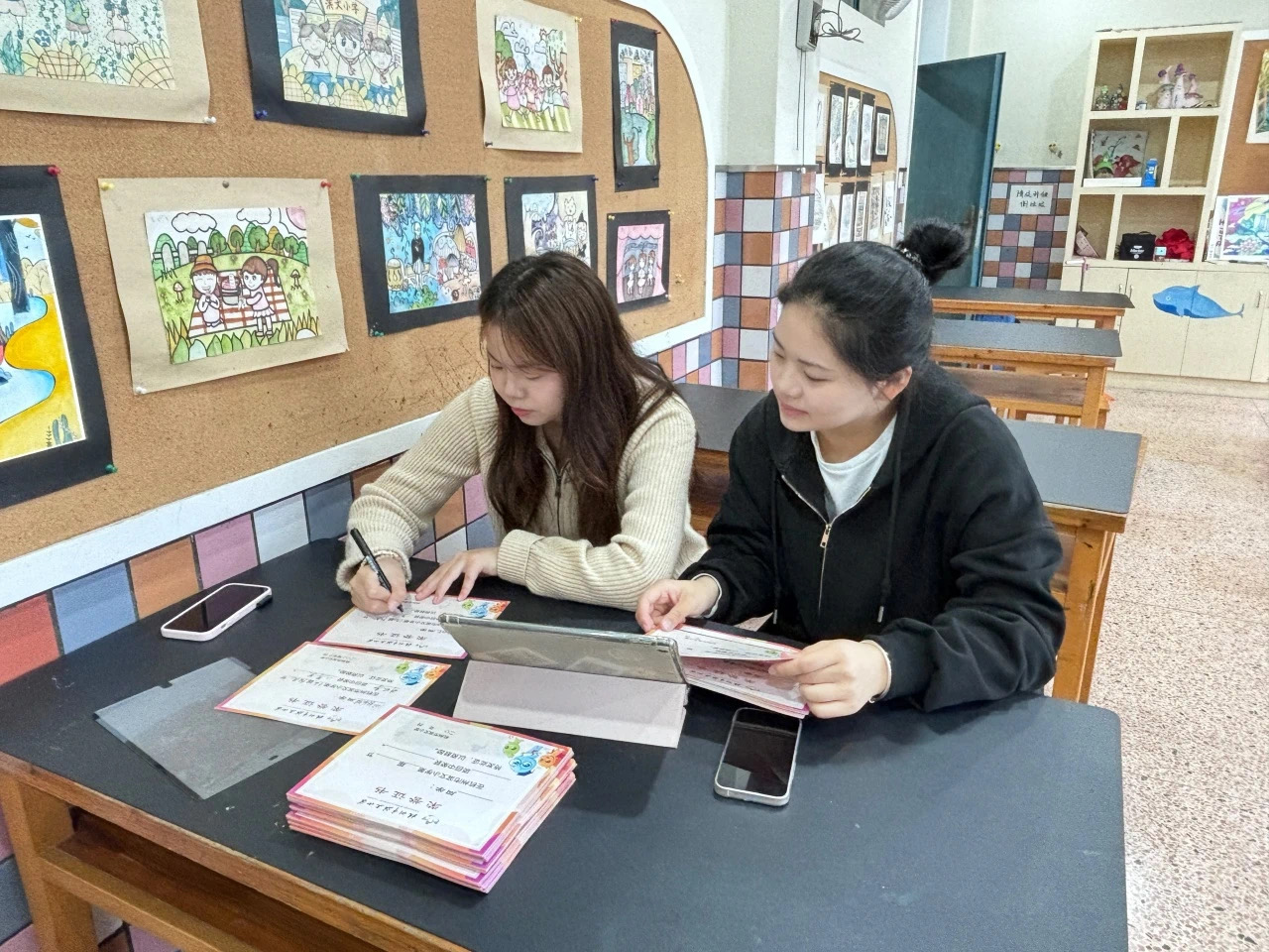 在杭州市钱塘实验小学两个校区,6位见习生共同经历了一周的见习生活,他们一起听课学习,讨论教案,并研讨教学方法。这次见习不仅让他们深入了解了音乐教育的实践,也增进了他们之间的合作与交流。