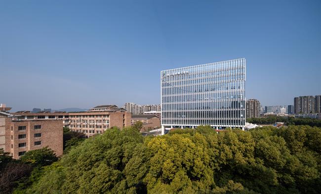 江畔新楼映日辉,浙艺学府展宏规