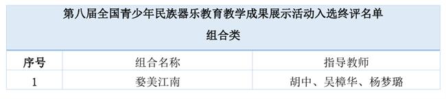 近日,文化和旅游部科技教育司公布第八届全国青少年民族器乐教育教学成果展示活动入选终评名单,我校共有9个项目入选,将于8月18日至23日赴南京参加现场展示暨终评,与全国各大音乐学院及艺术院校同台竞技。