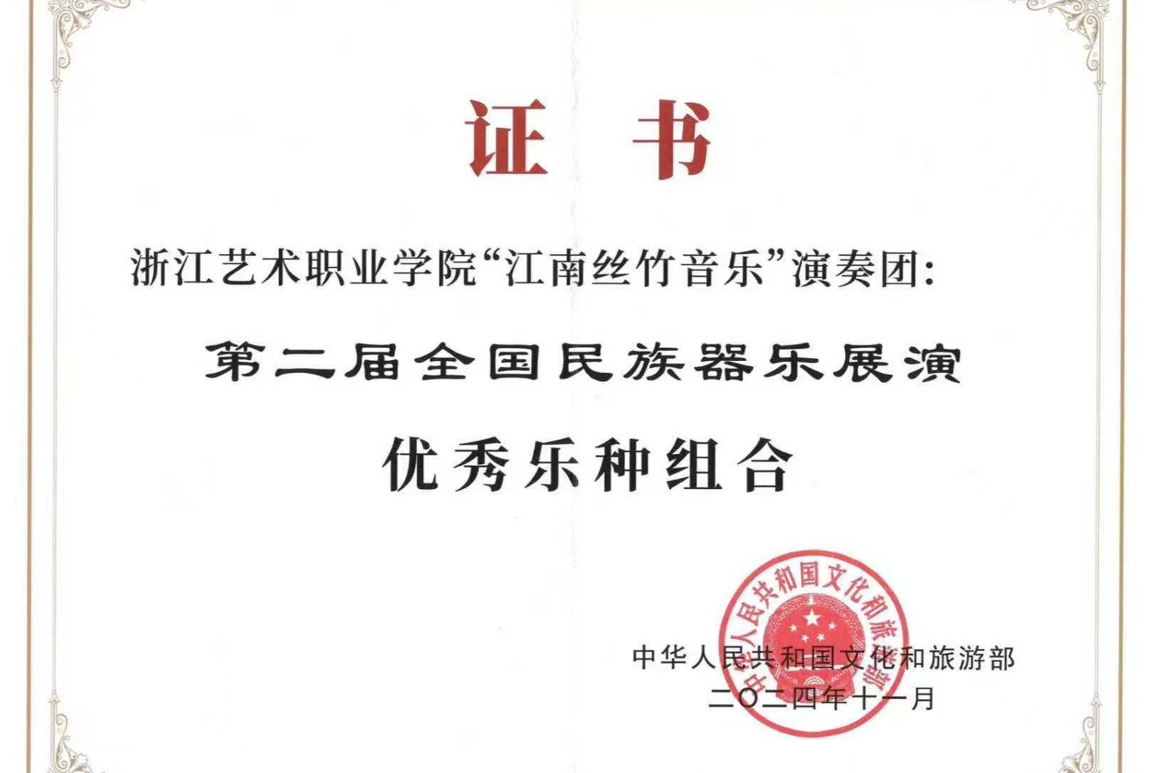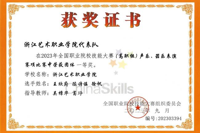 近年来,学院师生在国家级、省级各类专业赛事中累计获奖300余项,其中文化和旅游部中国民族器乐民间乐种组合展演奖3项、“红铜鼓”中国—东盟艺术教育成果展演奖3项,全国职业院校技能大赛艺术专业技能赛项一等奖8项,世界职业院校技能大赛总决赛一等奖1项、二等奖4项,全国大学生艺术展演活动二等奖2项,浙江省大学生职规赛、“挑战杯”、国际大学生创新大赛等赛事金奖1项、银奖2项、铜奖1项。立项国家艺术基金项目3项、省艺术基金大型项目4项、省人工智能教育应用试点校项目1项、浙江文化艺术发展基金资助项目8项,获奖等级和数量在全国艺术高等职业院校中位居前列。