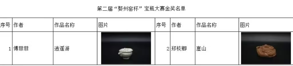 第二届“婺州窑杯”宝瓶大赛金奖名单